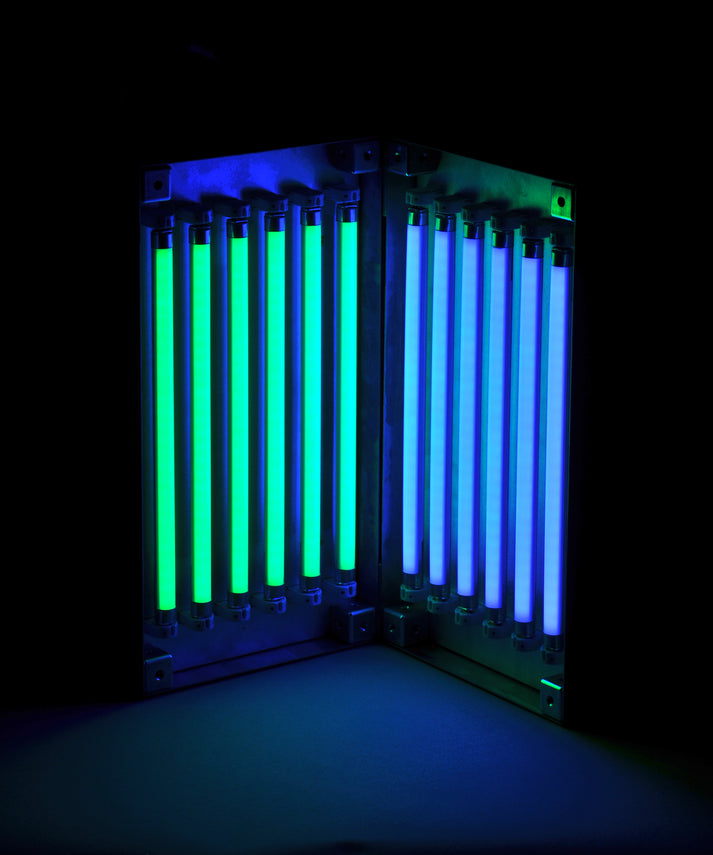 Each EXPO panel accommodates six 8-W T5 LZC-series lamps, providing reliable and uniform irradiation across an exposure area of approximately 8 × 12 inches. The reflective interior and carefully designed geometry provide consistent illumination with typical variations of ±10% across the exposure area, ensuring reproducible experimental conditions.