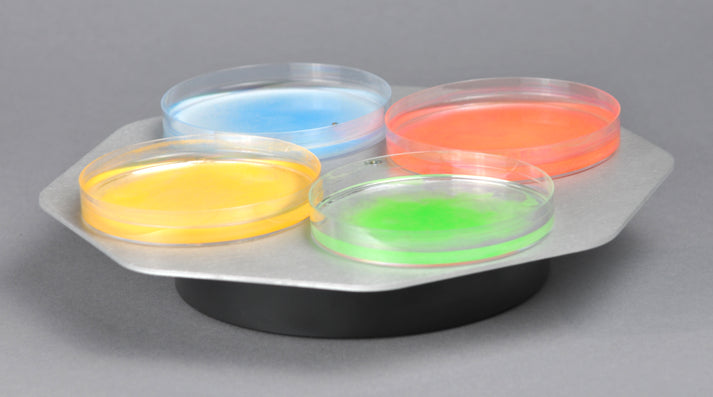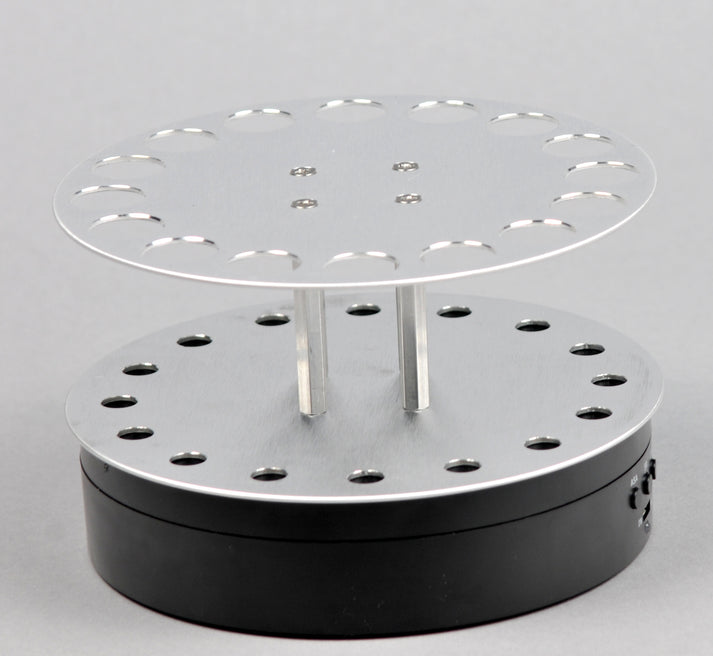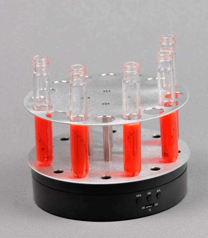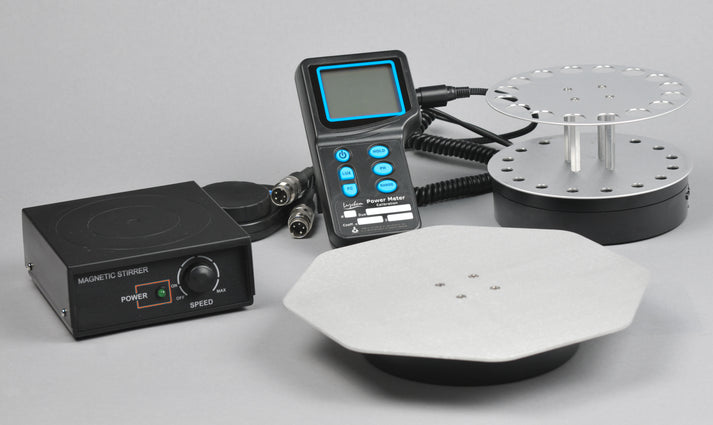 Complete accessory set for photochemical experiments including a portable turntable for solid samples, portable carousel, portable magnetic stirrer with variable speed (110 VAC), and a power meter calibrated for Luzchem UVA (367 nm) and visible lamps.